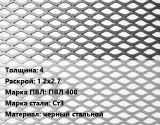 Лист просечно-вытяжной 4 1.2х2.7 Марка: ПВЛ 408 Сталь: Ст3 черный стальной