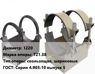 Опора трубопровода 1220 Т21.38 скользящая, шариковые ГОСТ: Серия 4.903-10 выпуск 5