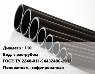 Труба полиэтиленовая 110 с раструбом ГОСТ: ТУ 2248-011-54432486-2013 гофрированная