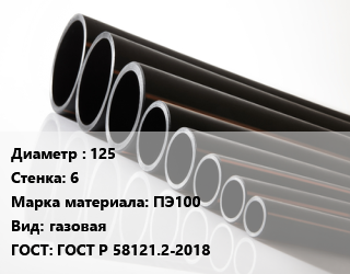 Труба полиэтиленовая 125х6 ПЭ100 газовая ГОСТ: ГОСТ Р 58121.2-2018