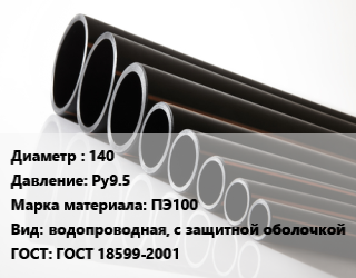 Труба полиэтиленовая 140 Ру9.5 ПЭ100 водопроводная, с защитной оболочкой ГОСТ: ГОСТ 18599-2001