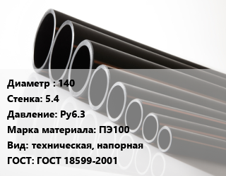 Труба полиэтиленовая 140х5.4 Ру6.3 ПЭ100 техническая, напорная ГОСТ: ГОСТ 18599-2001