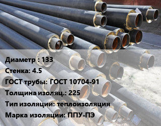 Труба предизолированная 133 s=4.5 ГОСТ: ГОСТ 10704-91 s изоляции=225 теплоизоляция ППУ-ПЭ