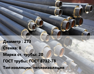 Труба предизолированная 273 s=8 Сталь: 20 ГОСТ: ГОСТ 8732-78 теплоизоляция