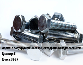 Болт с полукруглой головкой, с квадратным подголовником 5х32-35