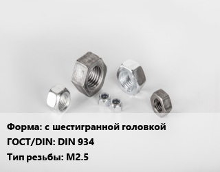 Гайка с шестигранной головкой DIN 934 М2.5