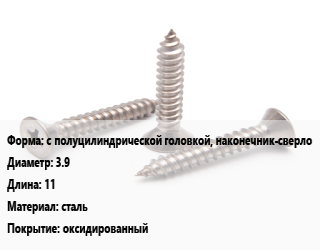 Саморез с полуцилиндрической головкой, наконечник-сверло D=3.9 L=11 сталь оксидированный