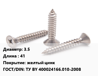 Саморез 3.5 L=41 желтый цинк ГОСТ: ТУ BY 400024166.010-2008