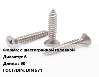 Саморез с шестигранной головкой D=6 L=90 ГОСТ: DIN 571