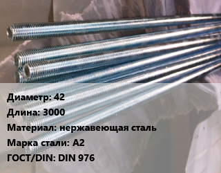 Шпилька стальная 42 L=3000 нержавеющая сталь Сталь: А2 ГОСТ: DIN 976