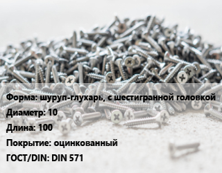 Шуруп шуруп-глухарь, с шестигранной головкой 10х100 оцинкованный ГОСТ: DIN 571