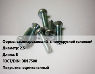 Винт самонарезающий, с полукруглой головкой 2.5х8 DIN 7500 оцинкованный