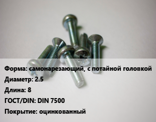 Винт самонарезающий, с потайной головкой 2.5х8 DIN 7500 оцинкованный