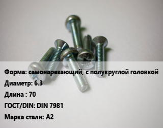 Винт самонарезающий, с полукруглой головкой 6.3х70 DIN 7981 Сталь: А2