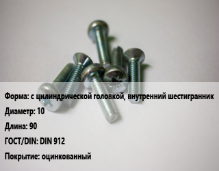 Винт с цилиндрической головкой, внутренний шестигранник 10х90 DIN 912 оцинкованный