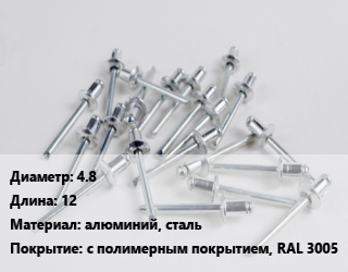 Заклепка 4.8х12 алюминий, сталь с полимерным покрытием, RAL 3005