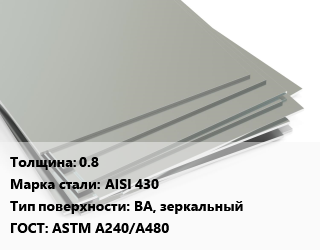 Лист нержавеющий 0.8 Сталь: AISI 430 Тип:BA, зеркальный ASTM A240/A480