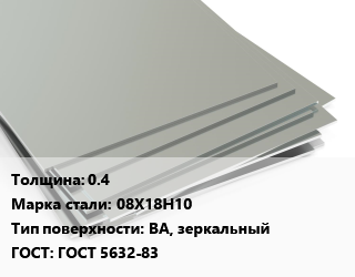 Лист нержавеющий 0.4 Сталь: 08Х18Н10 Тип:BA, зеркальный ГОСТ 5632-83