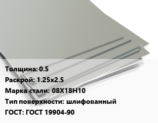 Лист нержавеющий 0.5 1.25х2.5 Сталь: 08Х18Н10 Тип:шлифованный ГОСТ 19904-90