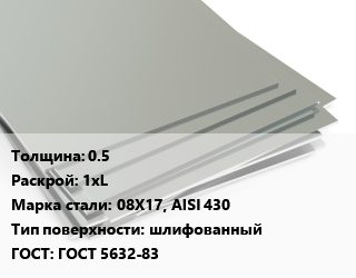 Лист нержавеющий 0.5 1хL Сталь: 08Х17, AISI 430 Тип:шлифованный ГОСТ 5632-83