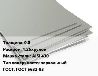 Лист нержавеющий 0.8 1.25хрулон Сталь: AISI 430 Тип:зеркальный ГОСТ 5632-83