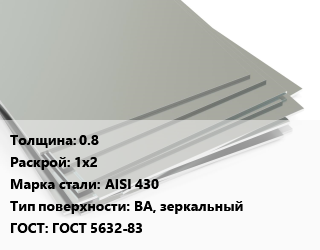 Лист нержавеющий 0.8 1х2 Сталь: AISI 430 Тип:BA, зеркальный ГОСТ 5632-83