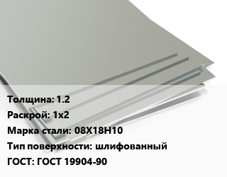 Лист нержавеющий 1.2 1х2 Сталь: 08Х18Н10 Тип:шлифованный ГОСТ 19904-90