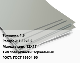 Лист нержавеющий 1.5 1.25х2.5 Сталь: 12Х17 Тип:зеркальный ГОСТ 19904-90