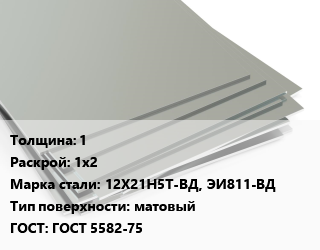 Лист нержавеющий 1 1х2 Сталь: 12Х21Н5Т-ВД, ЭИ811-ВД Тип:матовый ГОСТ 5582-75