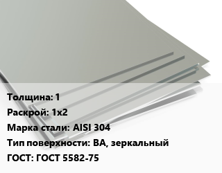 Лист нержавеющий 1 1х2 Сталь: AISI 304 Тип:BA, зеркальный ГОСТ 5582-75