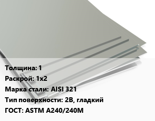 Лист нержавеющий 1 1х2 Сталь: AISI 321 Тип:2B, гладкий ASTM А240/240М