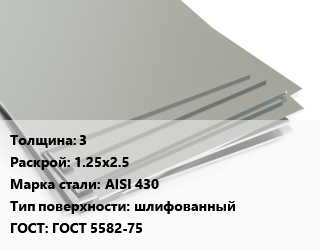 Лист нержавеющий 3 1.25х2.5 Сталь: AISI 430 Тип:шлифованный ГОСТ 5582-75