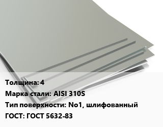 Лист нержавеющий 4 Сталь: AISI 310S Тип:No1, шлифованный ГОСТ 5632-83