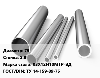 Труба нержавеющая 75х2.8 мм Сталь 03Х12Н10МТР-ВД ГОСТ: ТУ 14-159-89-75