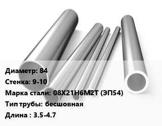 Труба нержавеющая 84х9-10 мм Сталь 08Х21Н6М2Т (ЭП54) бесшовная L=3.5-4.7