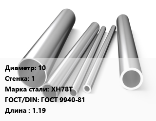 Труба нержавеющая 10х1 мм Сталь ХН78Т ГОСТ: ГОСТ 9940-81 L=1.19