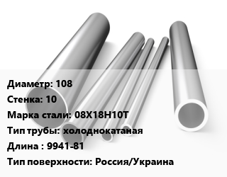 Труба нержавеющая 108х10 мм Сталь 08Х18Н10Т холоднокатаная L=9941-81 Россия/Украина