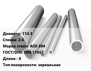 Труба нержавеющая 114.3х2.6 мм Сталь AISI 304 ГОСТ: DIN 17457 L=6 зеркальная