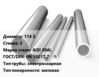 Труба нержавеющая 114.3х2 мм Сталь AISI 304L ГОСТ: EN 10217-7 электросварная матовая