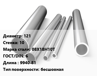 Труба нержавеющая 121х10 мм Сталь 08Х18Н10Т ГОСТ: 6 L=9940-81 бесшовная