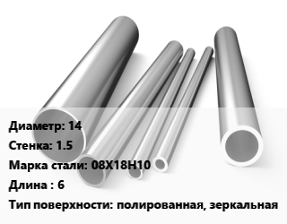 Труба нержавеющая 14х1.5 мм Сталь 08Х18Н10 L=6 полированная, зеркальная