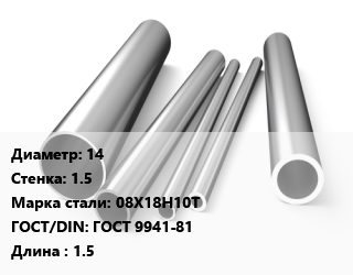 Труба нержавеющая 14х1.5 мм Сталь 08Х18Н10Т ГОСТ: ГОСТ 9941-81 L=1.5
