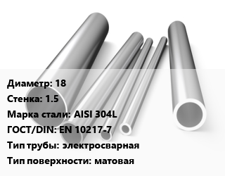 Труба нержавеющая 18х1.5 мм Сталь AISI 304L ГОСТ: EN 10217-7 электросварная матовая