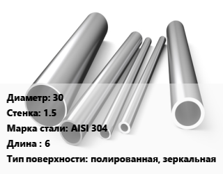 Труба нержавеющая 30х1.5 мм Сталь AISI 304 L=6 полированная, зеркальная