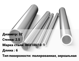 Труба нержавеющая 32х2.5 мм Сталь 08Х18Н10 L=6 полированная, зеркальная
