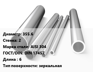 Труба нержавеющая 355.6х2 мм Сталь AISI 304 ГОСТ: DIN 17457 L=6 зеркальная