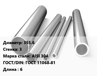 Труба нержавеющая 355.6х3 мм Сталь AISI 304 ГОСТ: ГОСТ 11068-81 L=6