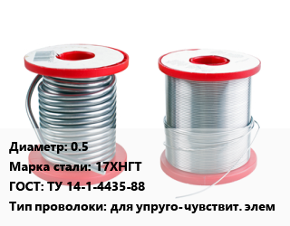 Проволока из прецизионных сплавов 0.5 Сталь: 17ХНГТ ГОСТ: ТУ 14-1-4435-88 для упруго-чувствит. элем