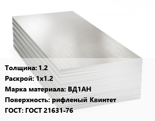 Алюминиевый лист 1.2 1х1.2 Марка: ВД1АН рифленый Квинтет ГОСТ: ГОСТ 21631-76