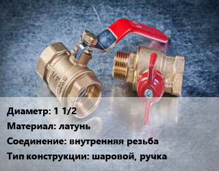 Кран металлический 1 1/2 латунь внутренняя резьба шаровой, ручка